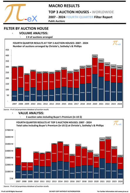 This MACRO Filter Overview Report applies a range of filters to the worldwide auction results in the Fourth Quarter of the Calendar Year over the last eighteen years (2007 to 2024) at the three major auction houses (CHRISTIE’S, SOTHEBY’S and PHILLIPS).